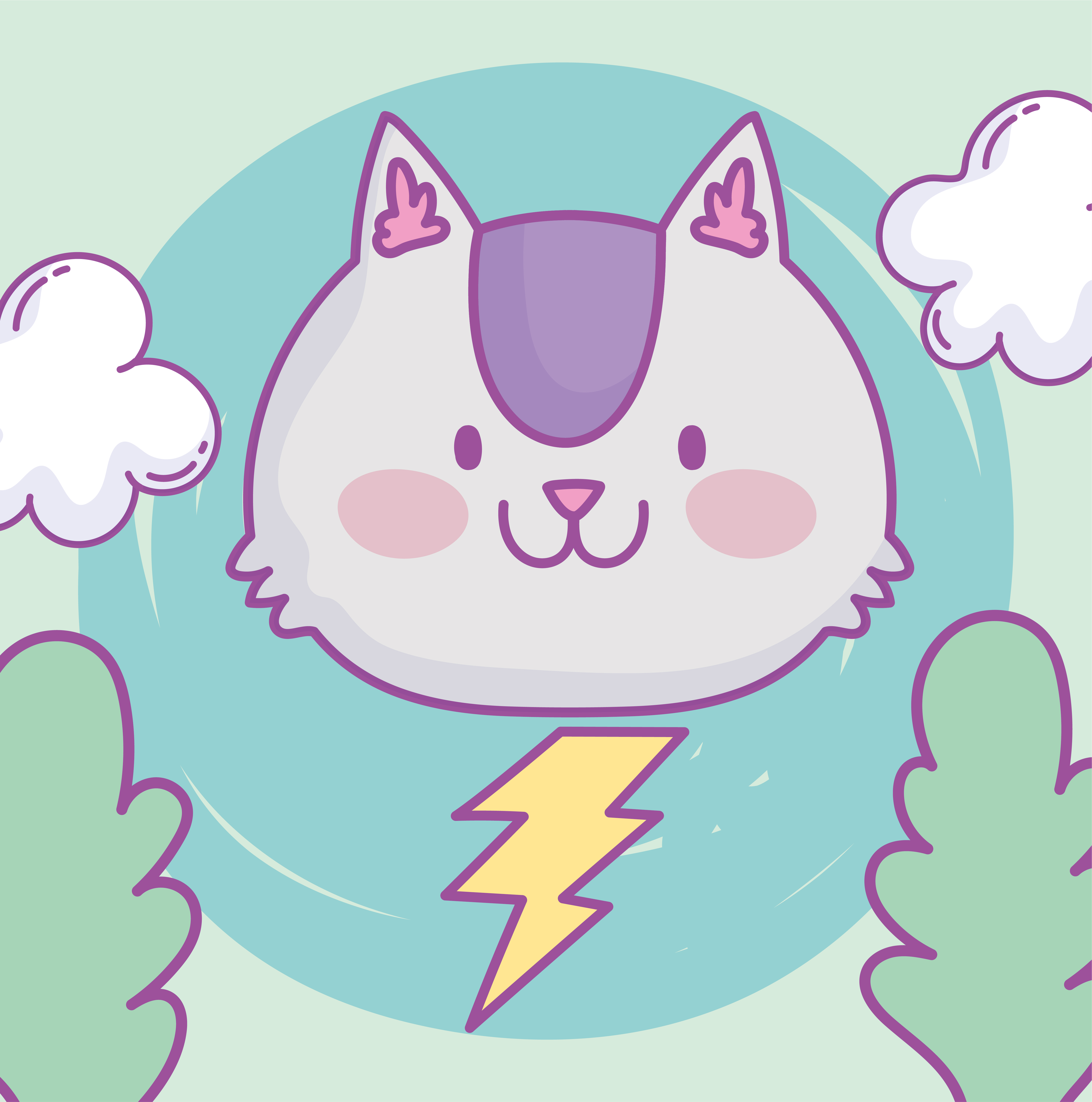 carita kawaii de gatito con rayo 1252120 Vector en Vecteezy